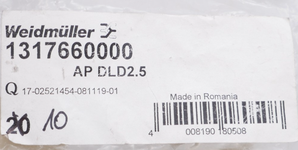 10 Stück Weidmüller AP DLD2.5 Endplatte Abschlussplatte 1317660000 Zustand: Neu und OVP Wir versenden Weltweit ! Bitte kontaktieren Sie uns für Details. We are shipping worldwide, please contact us by ebay system. |