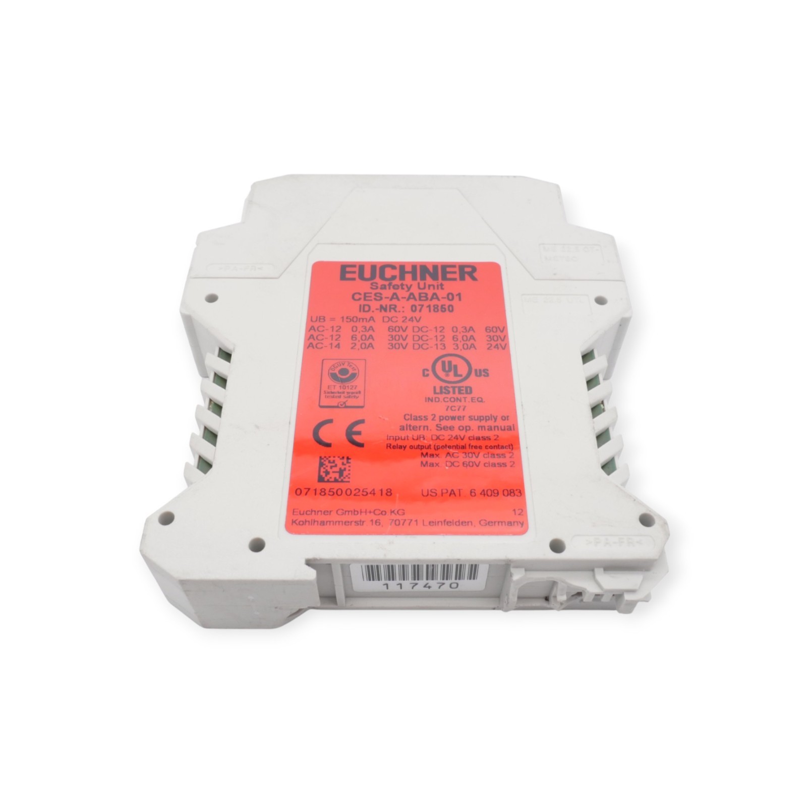 3 Stück Euchner CES-A-ABA-01 Sicherheitsrelais Auswertgerät 071850 UB=150mA DC24 Zustand: in sehr gutem Zustand aus Lagerauflösung Wir versenden Weltweit ! Bitte kontaktieren Sie uns für Details. We are shipping worldwide, please contact us by ebay system. |