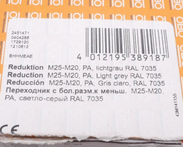 96 Stück OBO 2030 628 Reduktion 107R M25-M20 PA lichtgrau RAL 7035 Zustand: Neu und OVP Wir versenden Weltweit ! Bitte kontaktieren Sie uns für Details. We are shipping worldwide, please contact us by ebay system. |