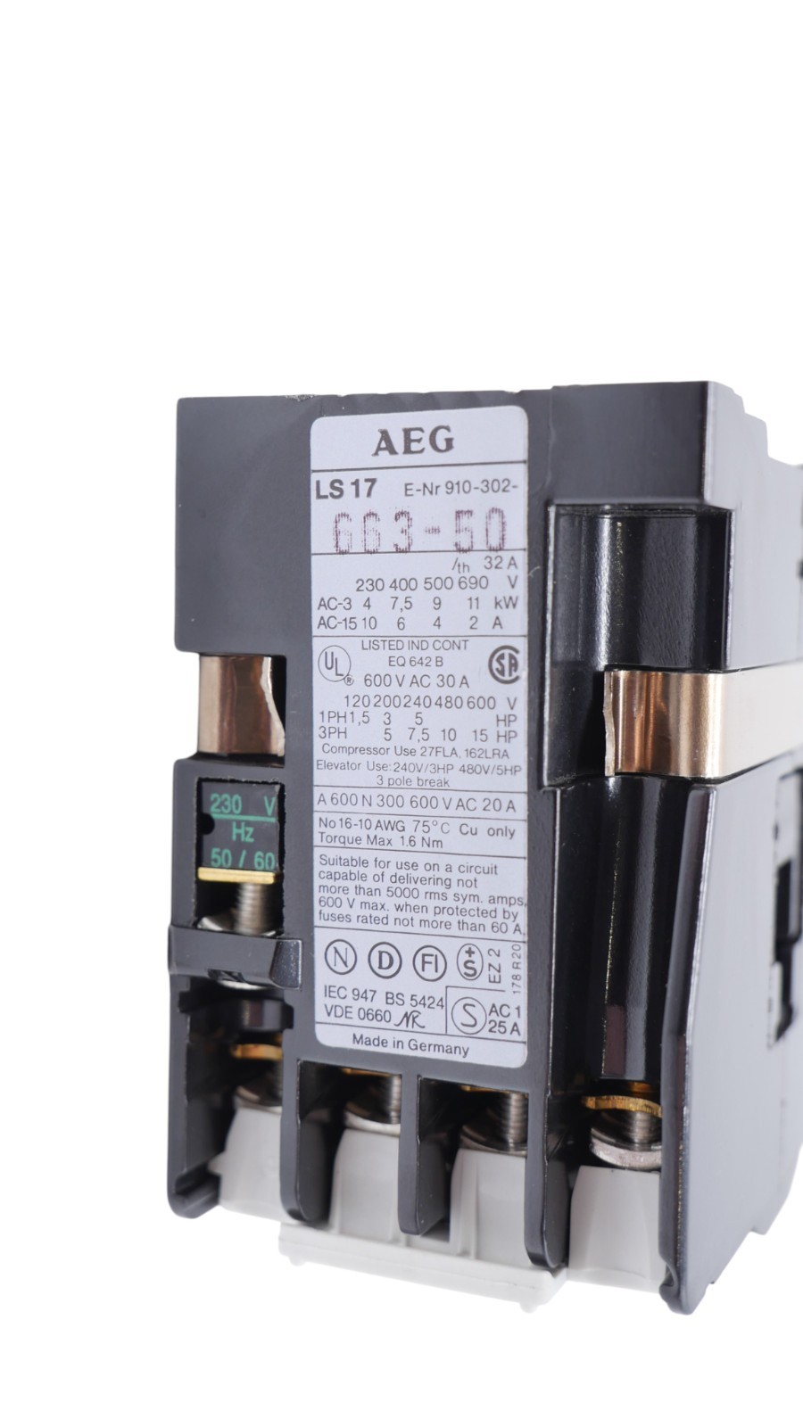 AEG LS17 Leistungsschütz E.Nr 910-302-663-5010E A600 N300 600V AC 20A 16-10 AWG Zustand: in sehr gutem Zustand aus Lagerauflösung Wir versenden Weltweit ! Bitte kontaktieren Sie uns für Details. We are shipping worldwide, please contact us by ebay system. |