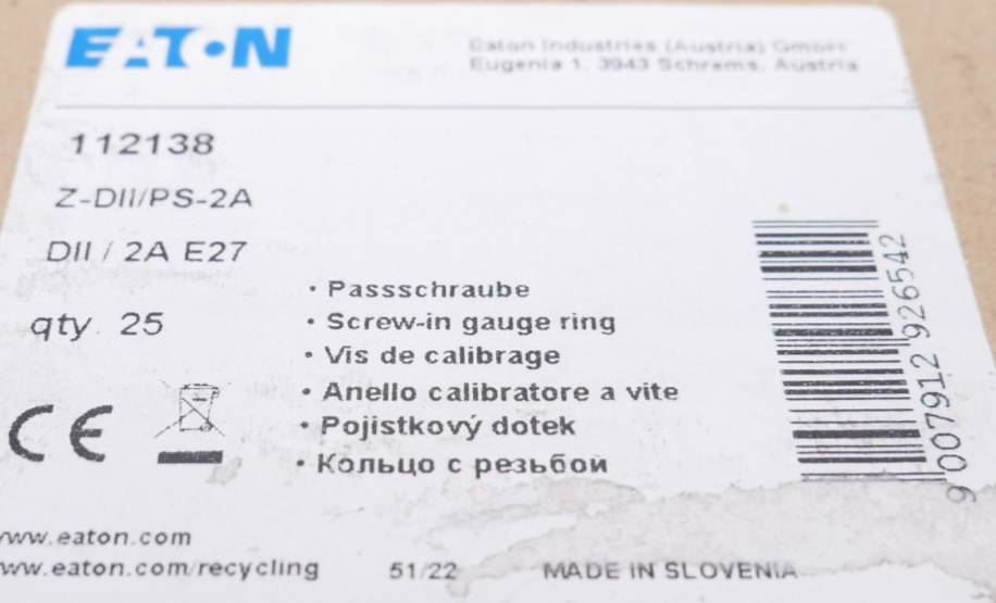 Be the first to review “Eaton Z-DII/PS-2A Passschraube 112138 DII 2A E27 VPE 25 Stück”