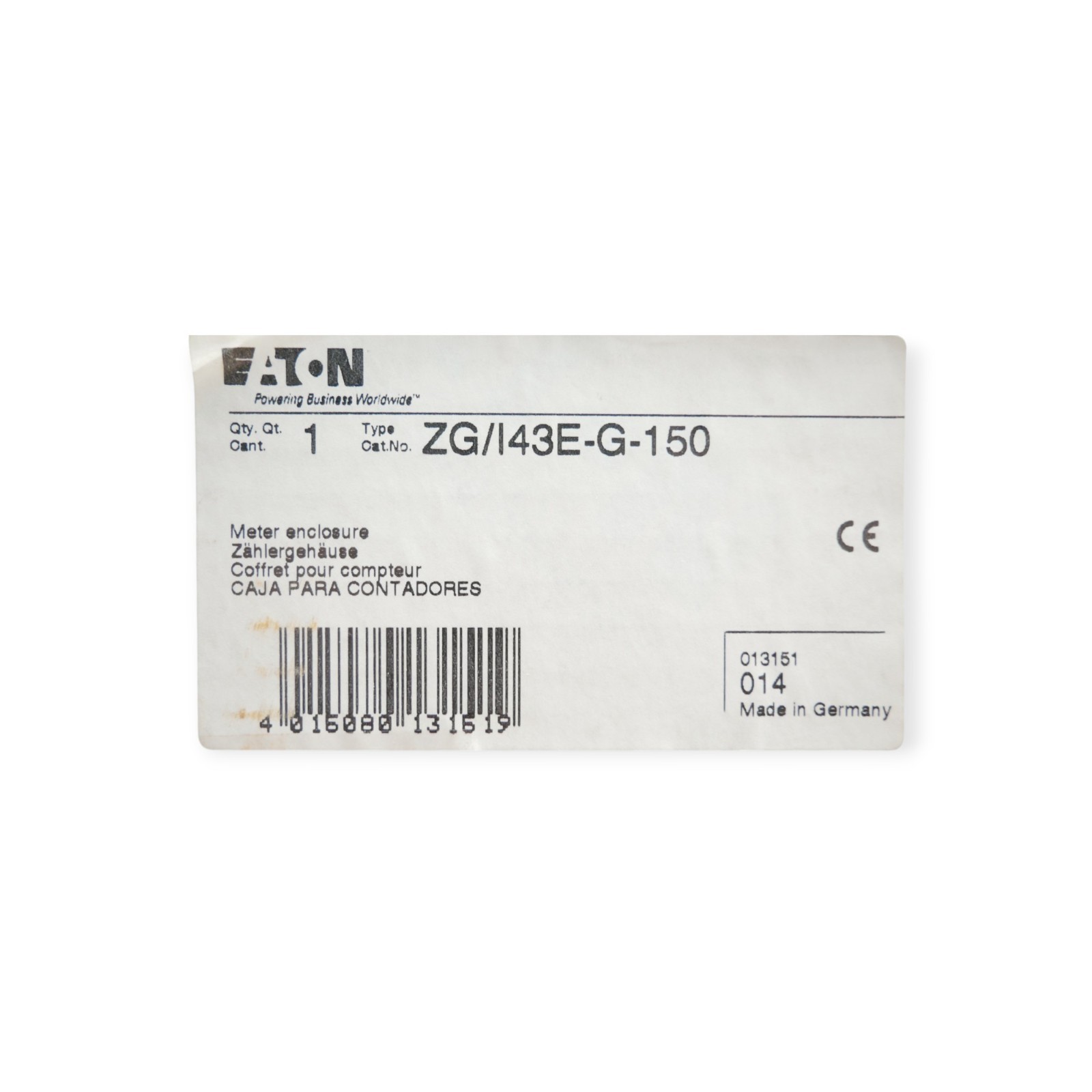 Eaton ZG/I43E-G-150 Zählergehäuse Zustand: Neu und OVP Wir versenden Weltweit ! Bitte kontaktieren Sie uns für Details. We are shipping worldwide, please contact us by ebay system. |