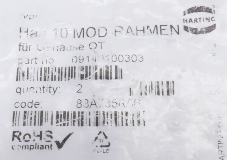 Be the first to review “Harting Han 10 Mod-Rahmen Gelenkrahmen für 3 Module 09140100303”