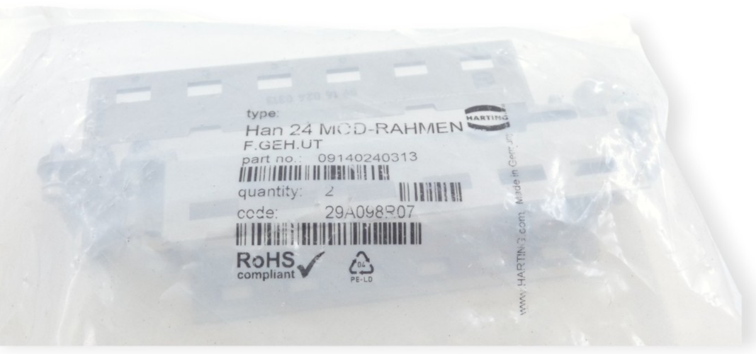 Harting Han 24 MOD Rahmen F.GEH.UT 09140240313 VPE 2 Stk. Zustand: Neu und OVP Wir versenden Weltweit ! Bitte kontaktieren Sie uns für Details. We are shipping worldwide, please contact us by ebay system. |