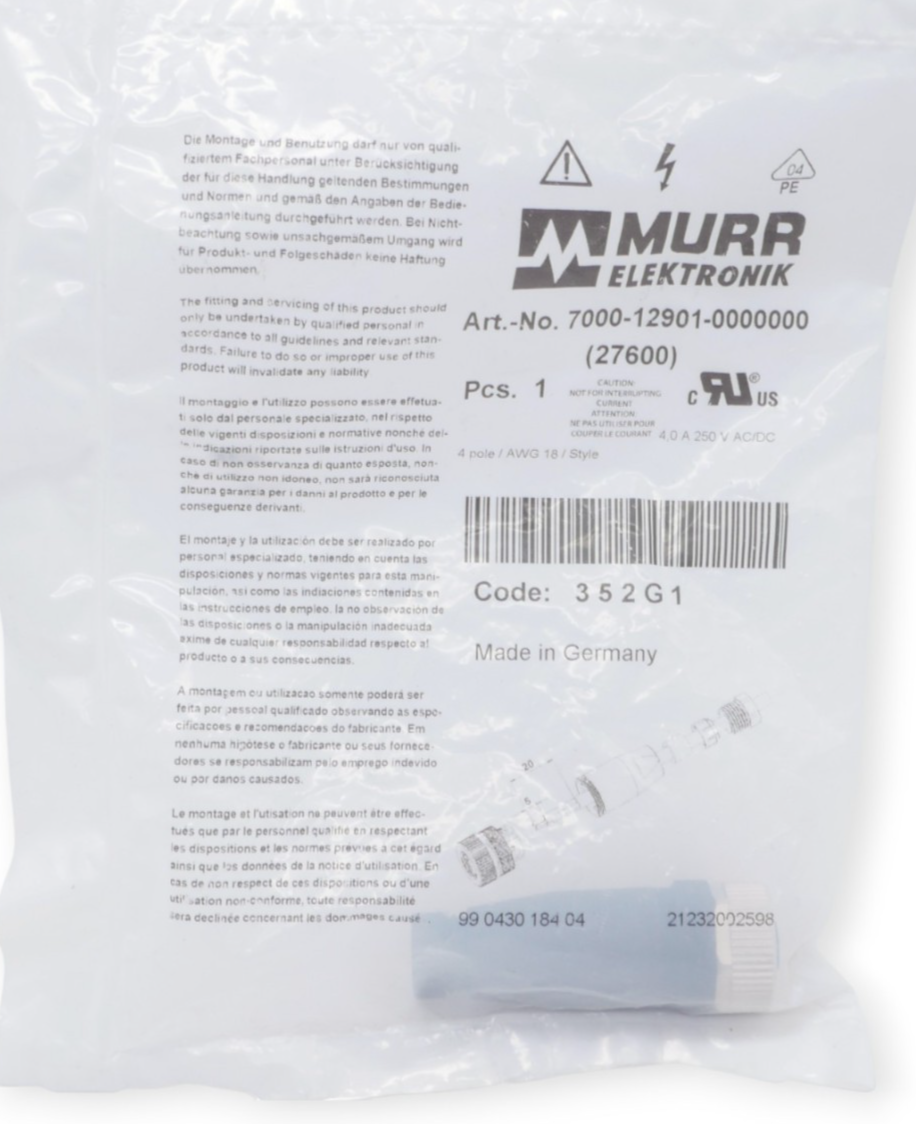 Murr Elektronik 7000-12901-0000000 Schraubklemmanschluss Zustand: Neu und OVP Wir versenden Weltweit ! Bitte kontaktieren Sie uns für Details. We are shipping worldwide, please contact us by ebay system. |