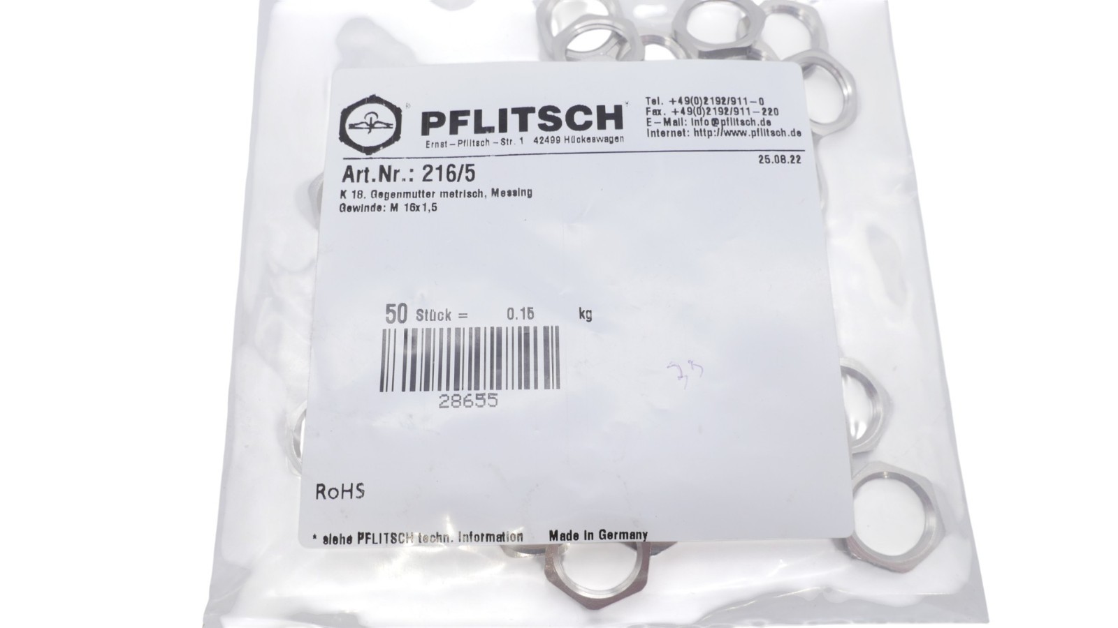 Pflitsch 216/5 K18 Gegenmutter metrisch M16x1,5 VPE 50 Stück Zustand: Neu und OVP Wir versenden Weltweit ! Bitte kontaktieren Sie uns für Details. We are shipping worldwide, please contact us by ebay system. |