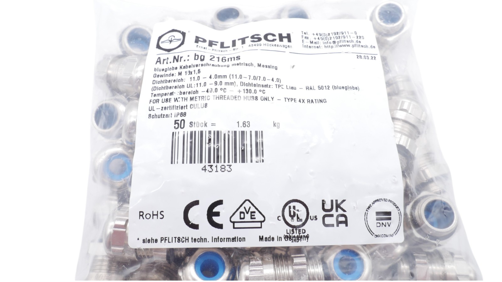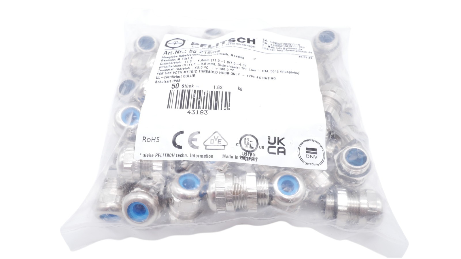 Pflitsch bg 216ms Kabelverschraubung blueglobe metrisch Messing 40-130° RAL 5012 VPE 50 Stück Zustand: Neu und OVP Wir versenden Weltweit ! Bitte kontaktieren Sie uns für Details. We are shipping worldwide, please contact us by ebay system. |