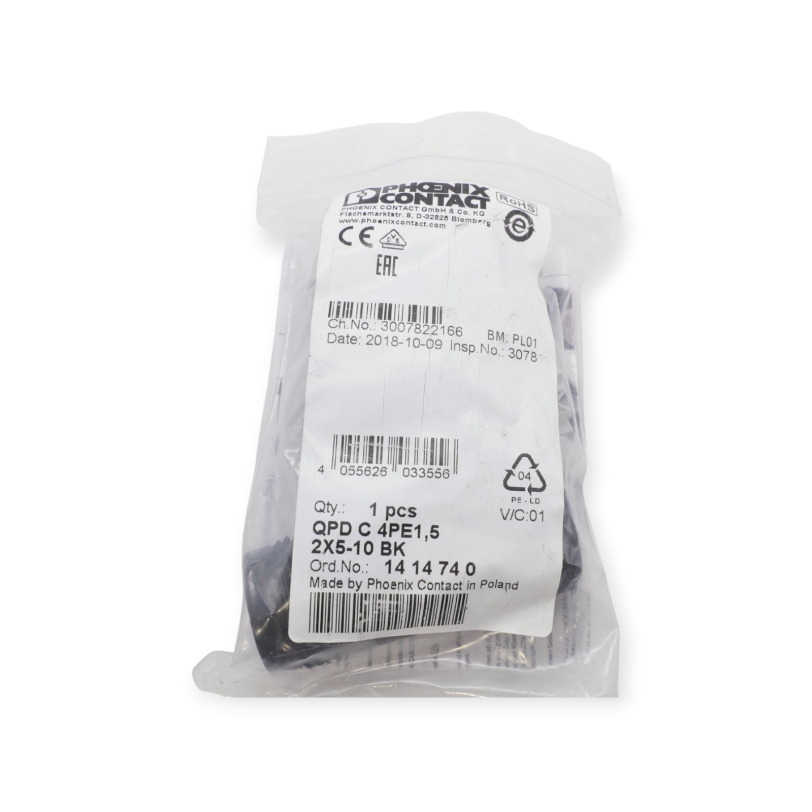 Phoenix Contact 1414740 Leitungsverbinder QPD C 4PE1,5 2×5-10 BK VPE 1 Stück