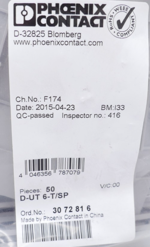 Phoenix-Contact D-UT 6-T/SP Abschlussdeckel 48,3×2,2×105,5mm grau 3072816 VPE 50 Stück Zustand: Neu und OVP Wir versenden Weltweit ! Bitte kontaktieren Sie uns für Details. We are shipping worldwide, please contact us by ebay system. |