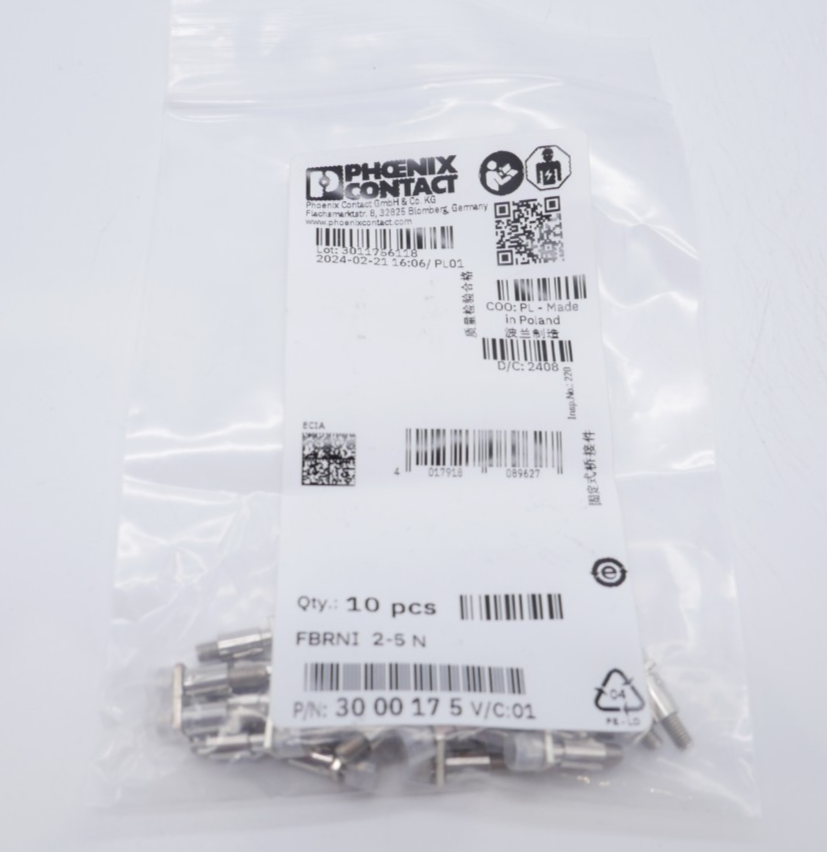 Phoenix Contact FBRNI 2-5 N Feste Brücke 3000175 VPE: 10 Stk. Zustand: Neu und OVP Wir versenden Weltweit ! Bitte kontaktieren Sie uns für Details. We are shipping worldwide, please contact us by ebay system. |