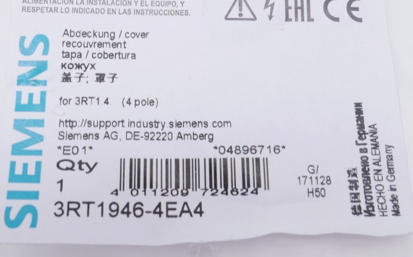 Siemens 3RT1946-4EA4 Abdeckung Cover 4-polig Zustand: aus Lagerauflösung – Artikel kann Lagerspuren aufweisen Wir versenden Weltweit ! Bitte kontaktieren Sie uns für Details. We are shipping worldwide, please contact us by ebay system. |