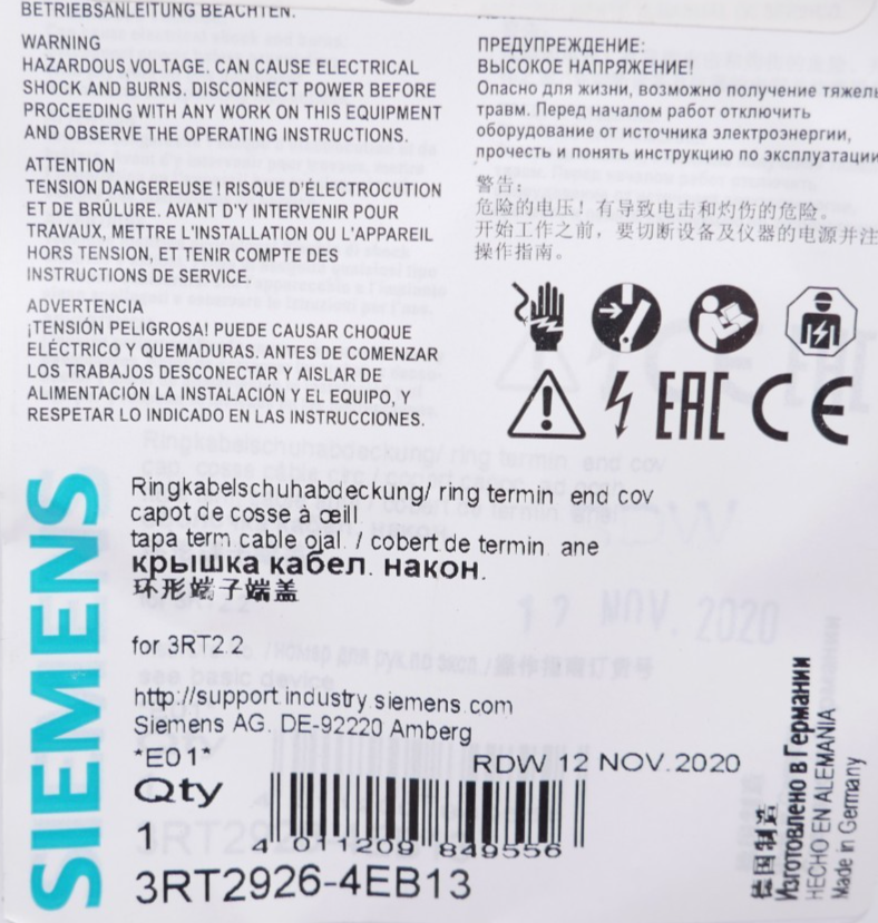 Siemens 3RT2926-4EB13 Ringkabelschuhabdeckung für 3RT2/2 Zustand: aus Lagerauflösung – Artikel kann Lagerspuren aufweisen Wir versenden Weltweit ! Bitte kontaktieren Sie uns für Details. We are shipping worldwide, please contact us by ebay system. |