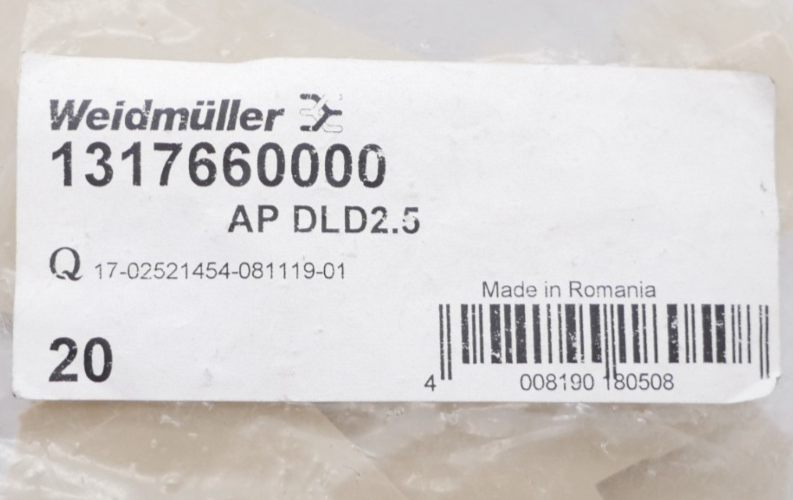 Weidmüller AP DLD2.5 Endplatte Abschlussplatte 1317660000 VPE 20 Stück Zustand: Neu und OVP Wir versenden Weltweit ! Bitte kontaktieren Sie uns für Details. We are shipping worldwide, please contact us by ebay system. |